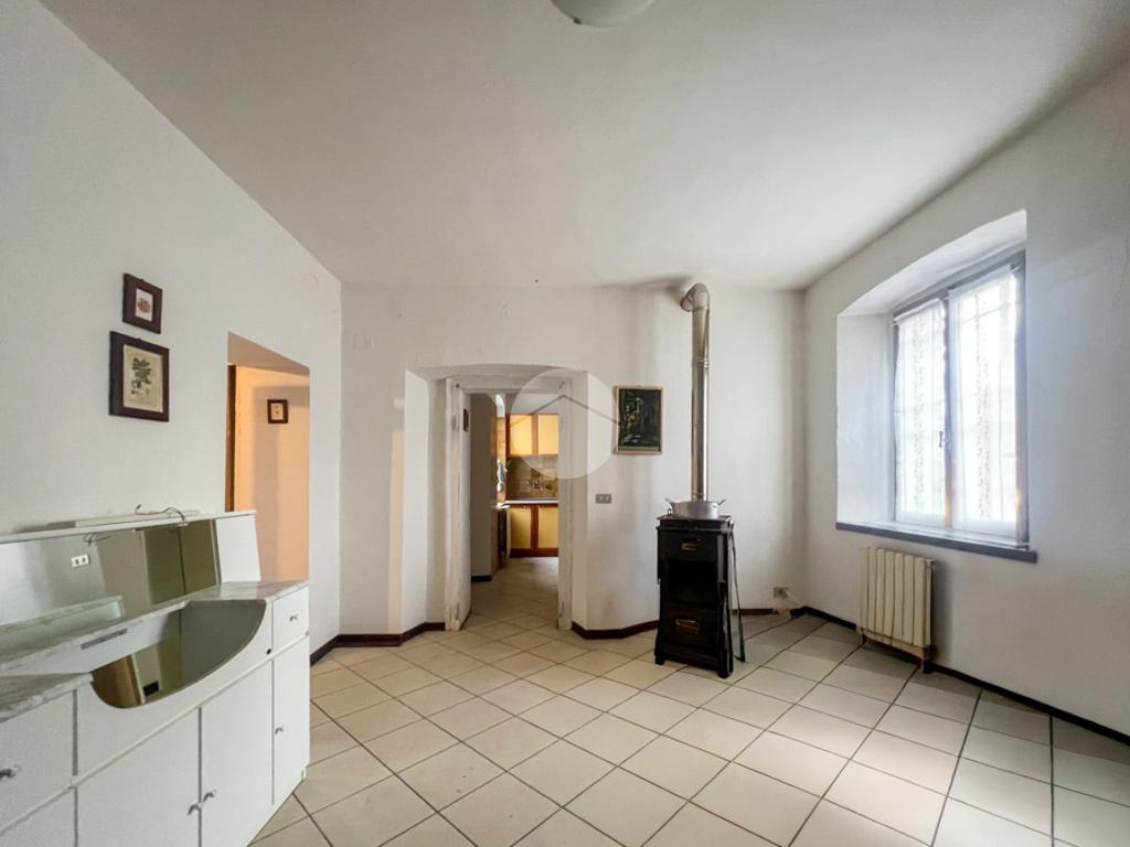Accedendo all’abitazione si viene accolti da un ingresso caratterizzato dalla presenza di un camino.
