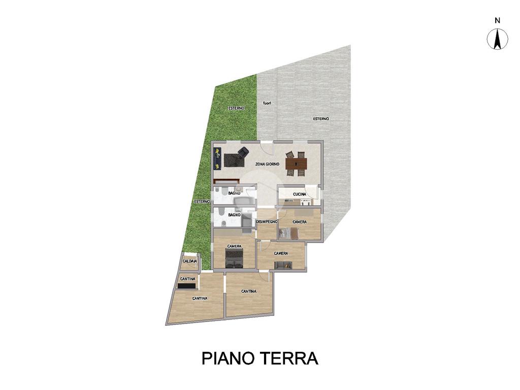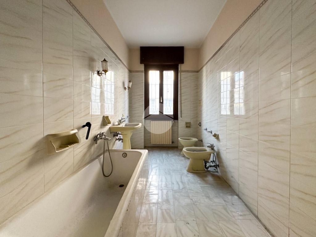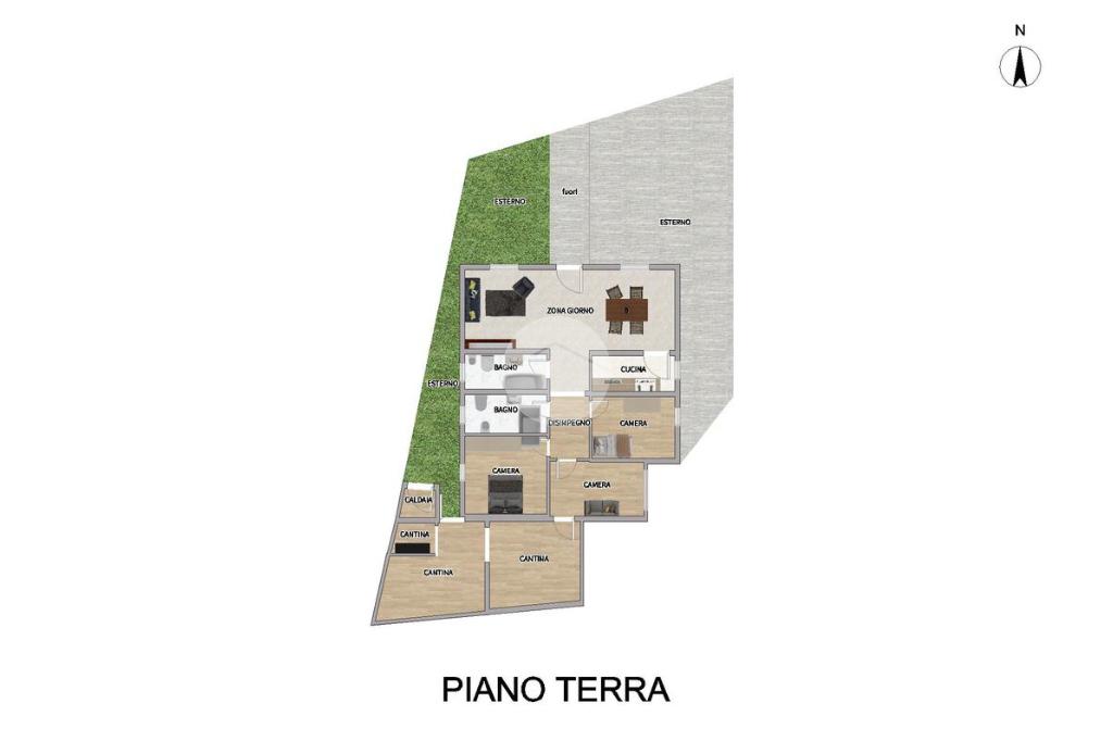 Entrando si viene accolti da una zona giorno ampia e luminosa, impreziosita da un camino, e da una cucina separata. Un disimpegno conduce alla zona notte, composta da due camere matrimoniali (con la possibilità di ricavarne una terza) e due bagni finestrati entrambi con vasca. Completano l’abitazione un locale lavanderia, una spaziosa cantina/magazzino, il locale caldaia e un piccolo spazio verde adiacente ad essa.