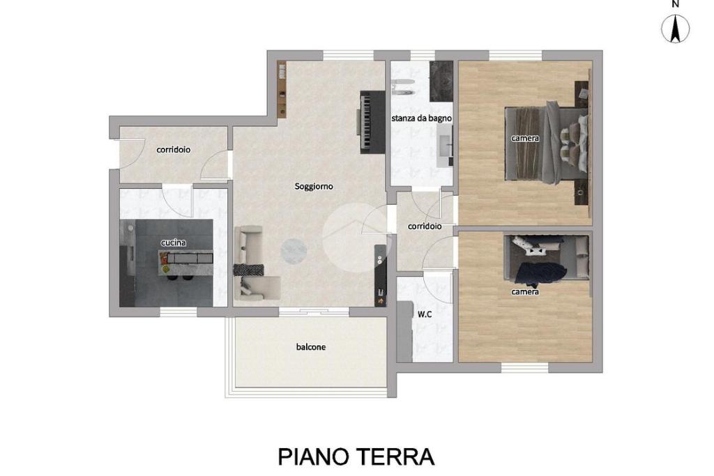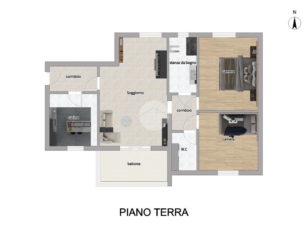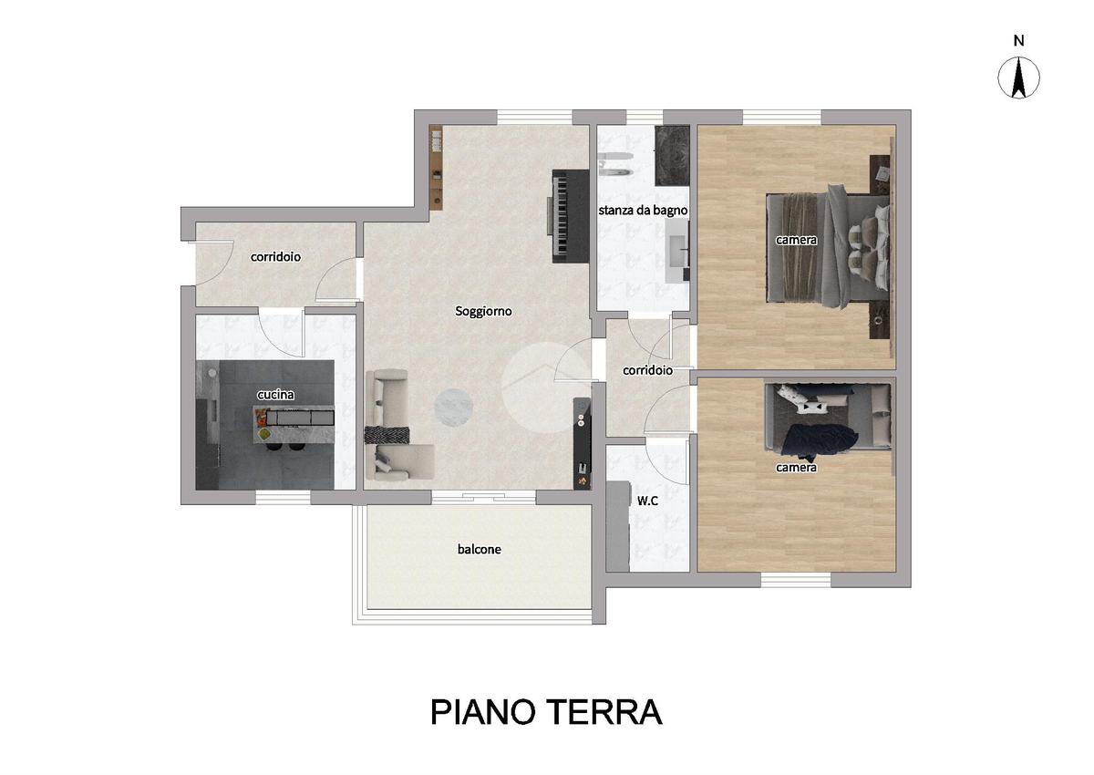 Completa la soluzione un box auto ed un terrazzino accessibile direttamente dal living, perfetto per momenti di relax all’aperto o conviviali.