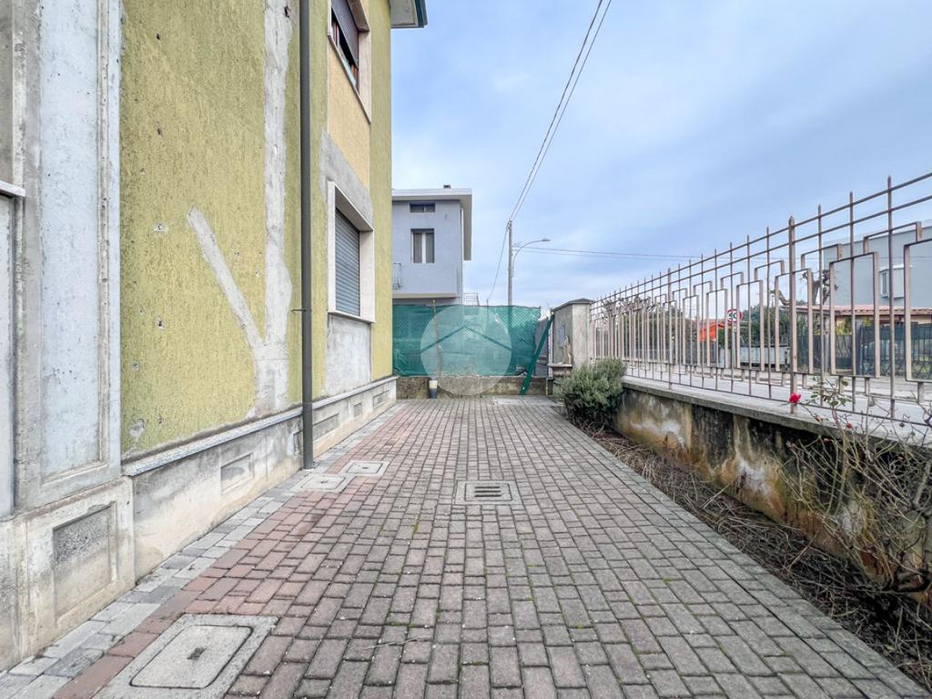 Sul retro dell’abitazione si trovano due box auto ed un ripostiglio, il cui transito al vialetto ha una servitù di passaggio.
