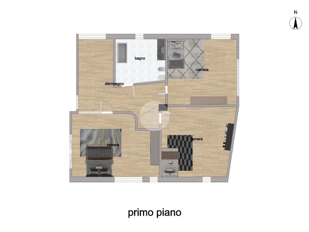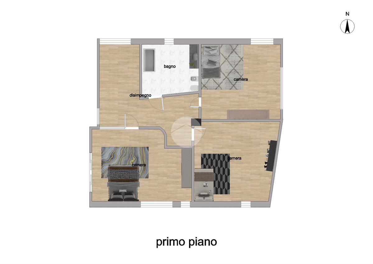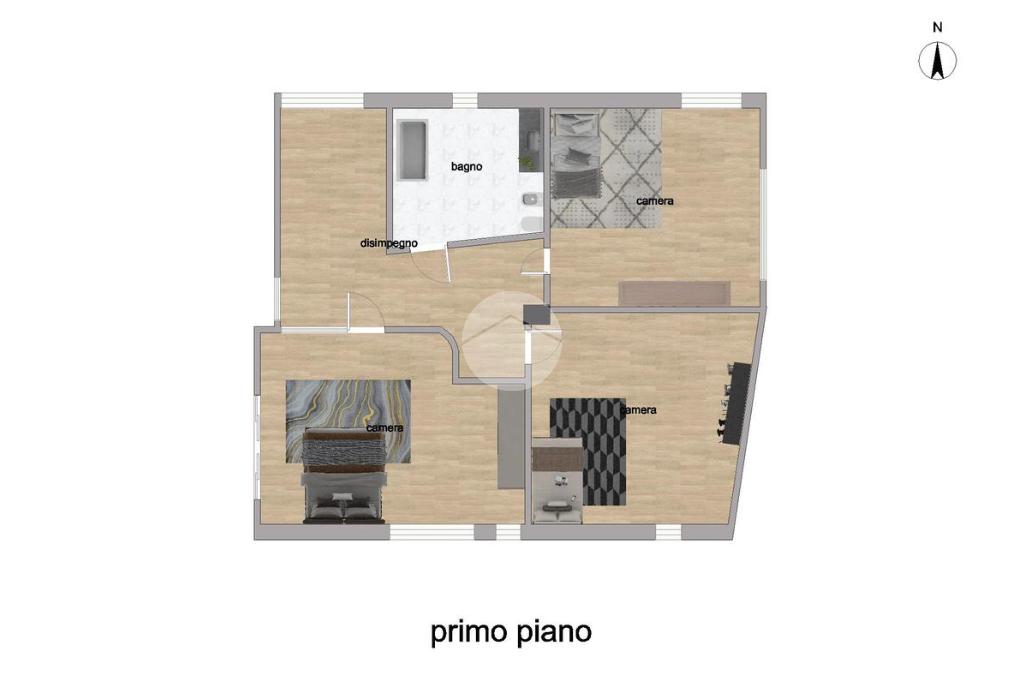 Salendo al primo piano, troviamo tre spaziose camere matrimoniali e un secondo bagno finestrato, dotato di doppio lavandino e vasca. Dal disimpegno si accede alla soffitta, utile come spazio aggiuntivo.