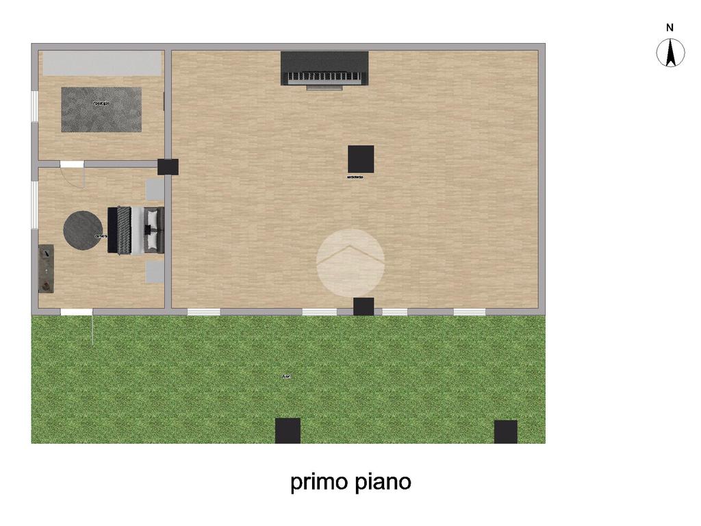 Dal porticato, tramite scala esterna, si accede al primo piano, un tempo adibito a fienile, composto ora da ulteriori locali accessori.