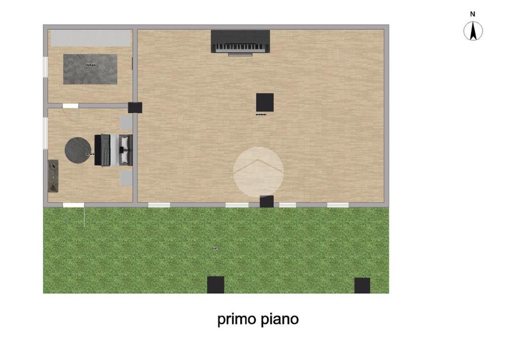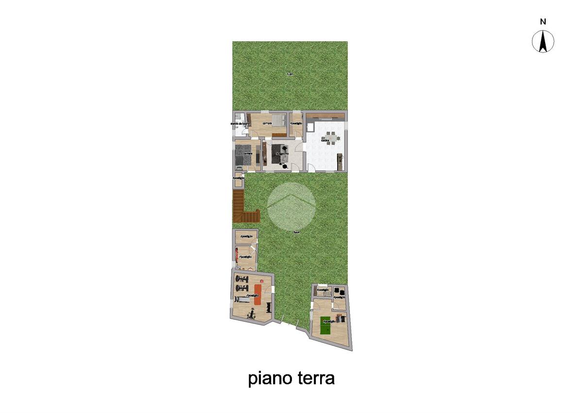 Tramite quest’ultima stanza si può accedere al retro della soluzione, dove si trova un ampio terreno sul quale è possibile edificare due appartamenti da 96 mq per piano.