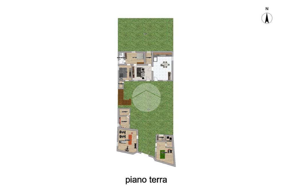 A completare la proprietà, sul fronte, vi è un ampio giardino con locali complementari.