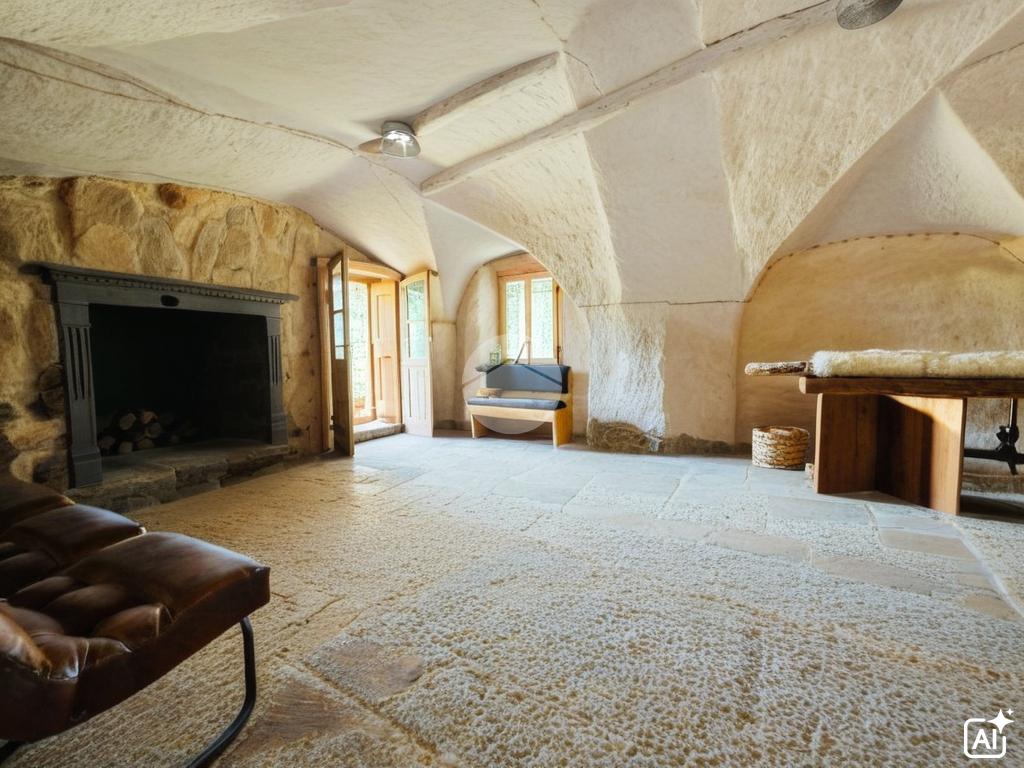 Al piano terra, attraversando il portico, troviamo i locali dedicati a cucina, bagno e sala da pranzo con camino.