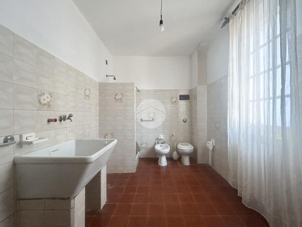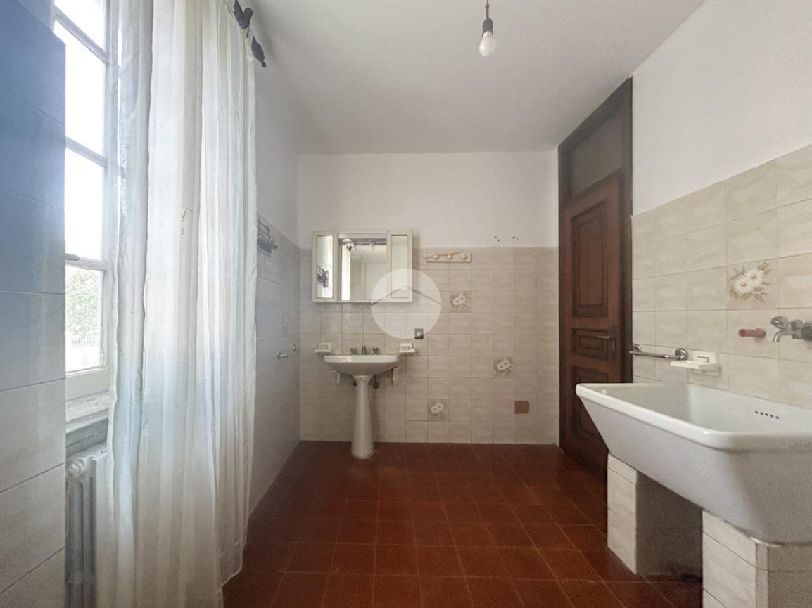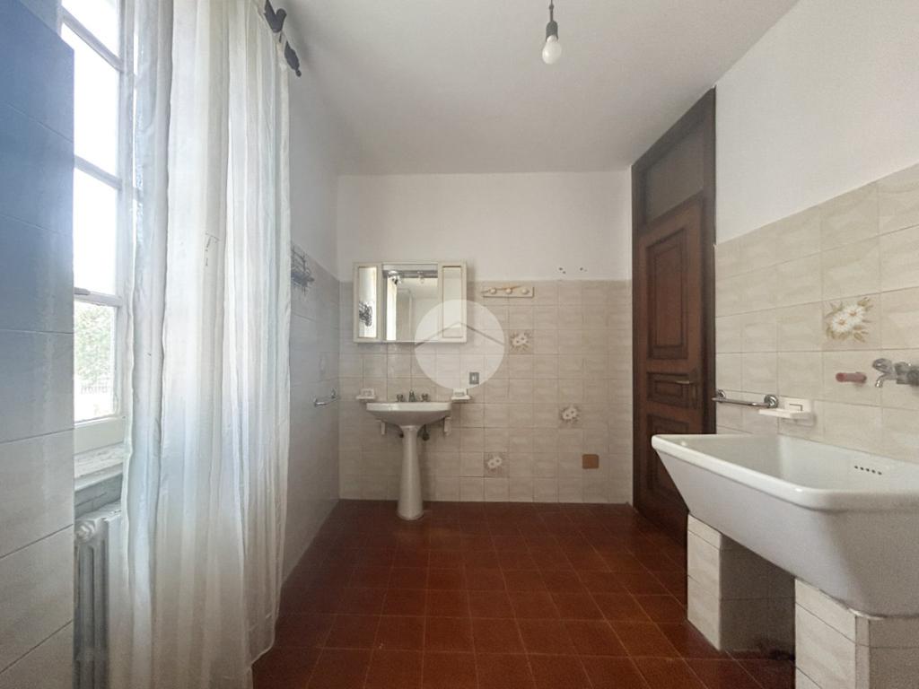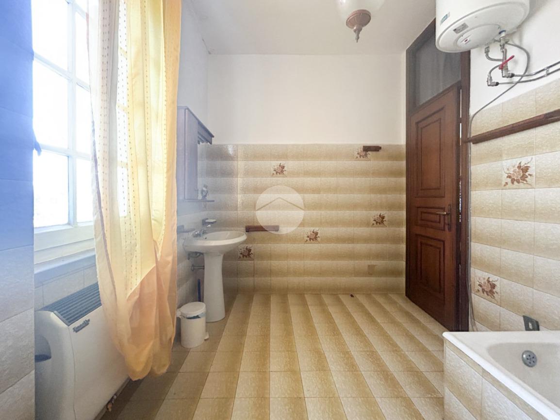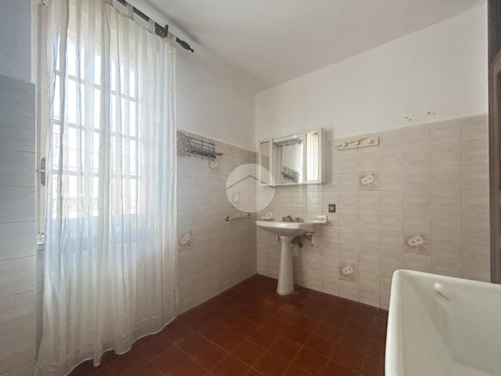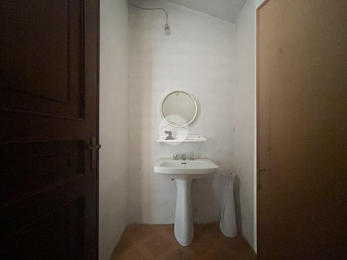 Dalla sala da pranzo, un secondo disimpegno ci permette di raggiungere il bagno che serve il piano dotato di finestra e doccia; e il seminterrato adibito a cantina/sala hobby tramite una scala interna.