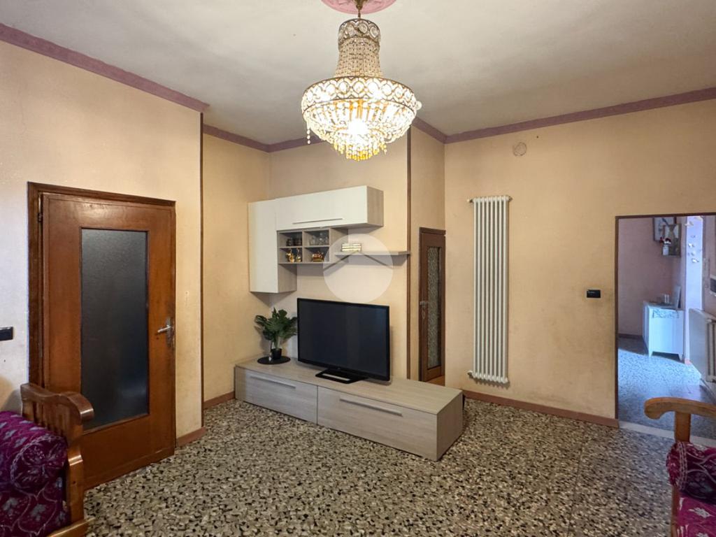 Al piano terra, superata la soglia d’ingresso, si accede a un primo salotto, seguito da una cucina separata e da un secondo salotto più ampio. Dal disimpegno si raggiunge il bagno al piano terra, finestrato, completo di box doccia, zona lavanderia e accesso diretto al cortile interno. Quest’ultimo permette l’accesso anche al box auto.