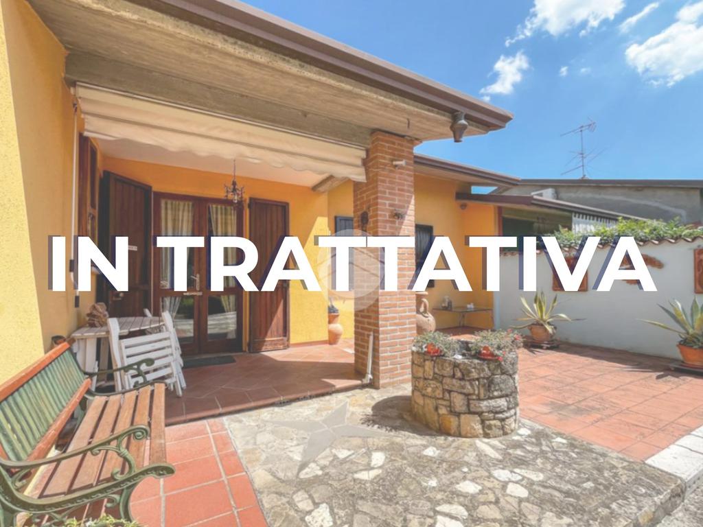 In tranquilla zona residenziale proponiamo in vendita una villetta bifamiliare del 1986, con ingresso pedonale e carraio esclusivi. La proprietà si apre su una corte frontale pavimentata, ideale per momenti all'aperto, e un portico che conduce all’ingresso principale. Al piano terra troviamo un ampio soggiorno con camino e una cucina abitabile separata, collegata a una veranda che si affaccia sul generoso giardino retrostante, dove trova spazio anche un orto. Sempre al piano terra è presente un primo bagno finestrato con doccia. Salendo pochi gradini si accede al piano rialzato, dedicato alla zona notte, composta da tre camere matrimoniali e da un secondo bagno, anch’esso finestrato, dotato di vasca. Dal piano terra, tramite scala interna, si raggiunge il piano seminterrato, dove si sviluppano una luminosa taverna finestrata, una spaziosa lavanderia e una cantina cieca, perfetta come deposito. Completa l’immobile il doppio posto auto coperto. L’abitazione si distingue per gli ambienti comodi e ben distribuiti, ideali per chi cerca indipendenza e spazi verdi.